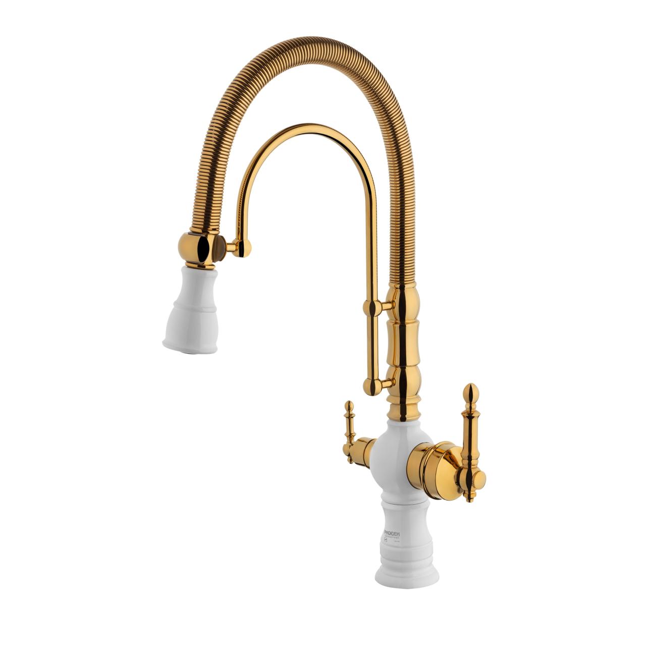 شیر ظرفشویی دو منظوره کاریزما (ایسکو دوکاره فنری) در پنج رنگ کروم، کرومات، طلایی، طلامات و سفیدطلا