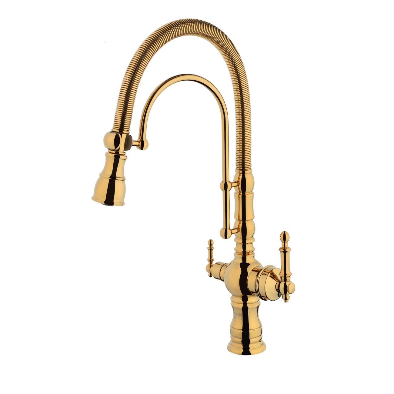 شیر ظرفشویی دو منظوره کاریزما (ایسکو دوکاره فنری) در پنج رنگ کروم، کرومات، طلایی، طلامات و سفیدطلا